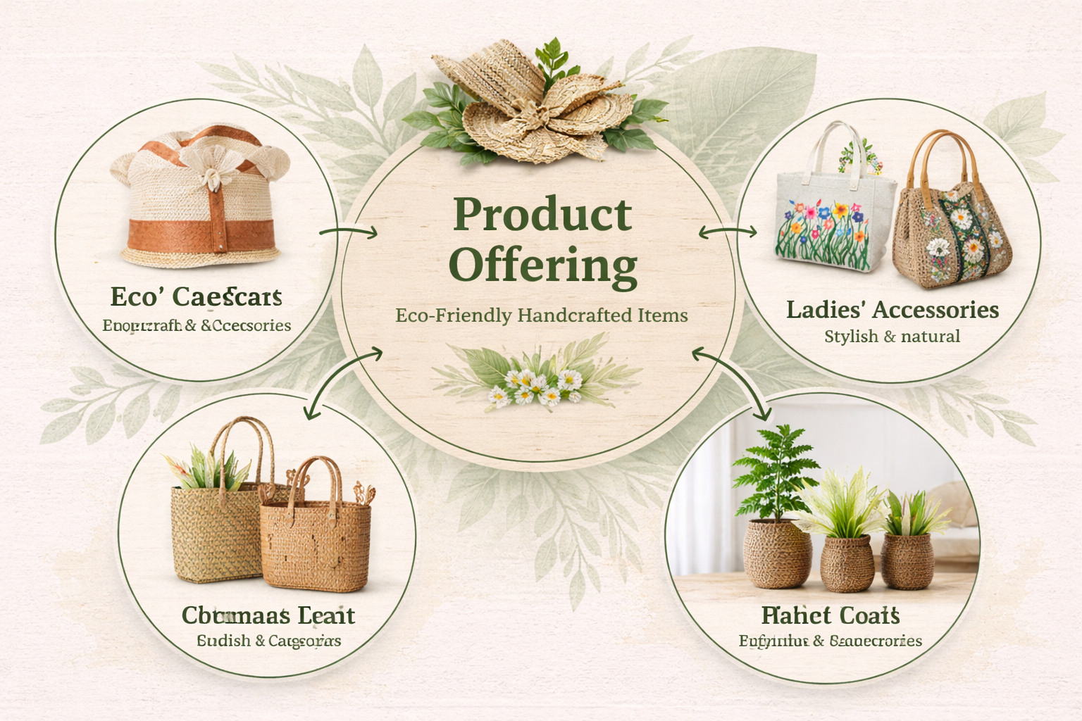 Our product line focuses on eco-friendly handcrafted items made from materials responsibly collected from nature, ensuring both sustainability and uniqueness in every product. We offer a carefully curated range of items, including: